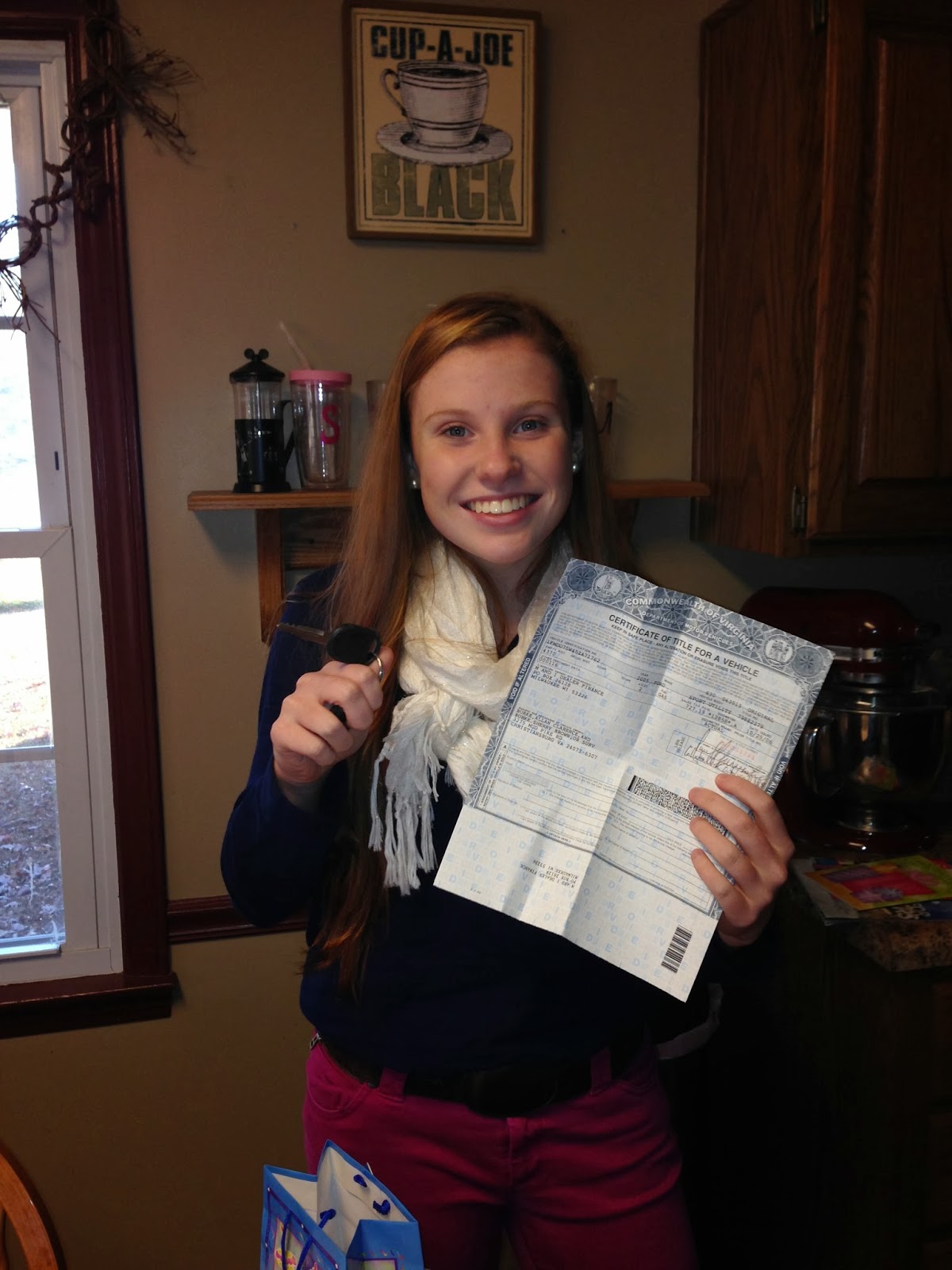 My Mom and Dad came down that afternoon to go with us to dinner and bring her their gift ...... a Ford Explorer! They were in the process of buying a new car this fall and decided instead of trading their old explorer in they would just give it to Abby. My dad explained it is a family car that we can all use since we all can fit in it ( rather tight) and it is 4x4 so we can take it to my inlaws cabin in the mountains. Still....It is ABBYS car to drive and she is SUPER happy about that!